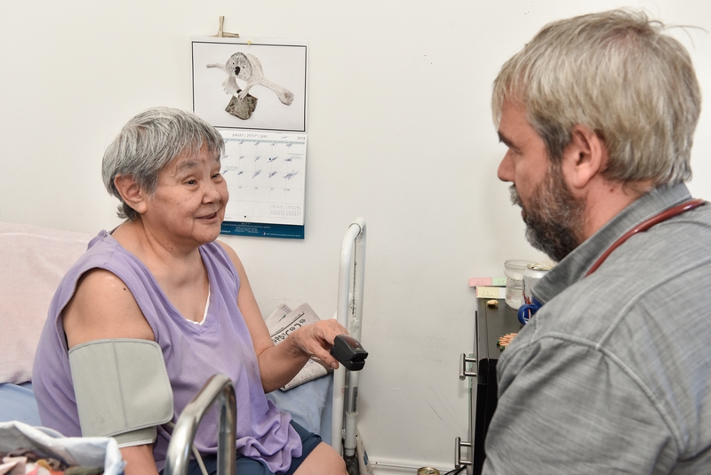 « Il faut comprendre qu’au Nunavik, il existe deux sortes d’aînés. Il y a ceux qui sont encore capables de partager leur histoire, leur expérience et leur sagesse. Et il y a aussi ceux qui vivent plus vieux et qui subissent les pathologies liées à la vieillesse. Il y a à peine 70 ans, les Inuits étaient toujours nomades. Pour une question de survie, les individus qui n’étaient plus capables de rendre service au clan étaient tout simplement laissés derrière, sur la banquise ou dans la toundra. En fait, c’était leur dernière contribution à la survie des autres. Soigner les aînés d’aujourd’hui représente un défi. Il est important de préserver leur dignité. »